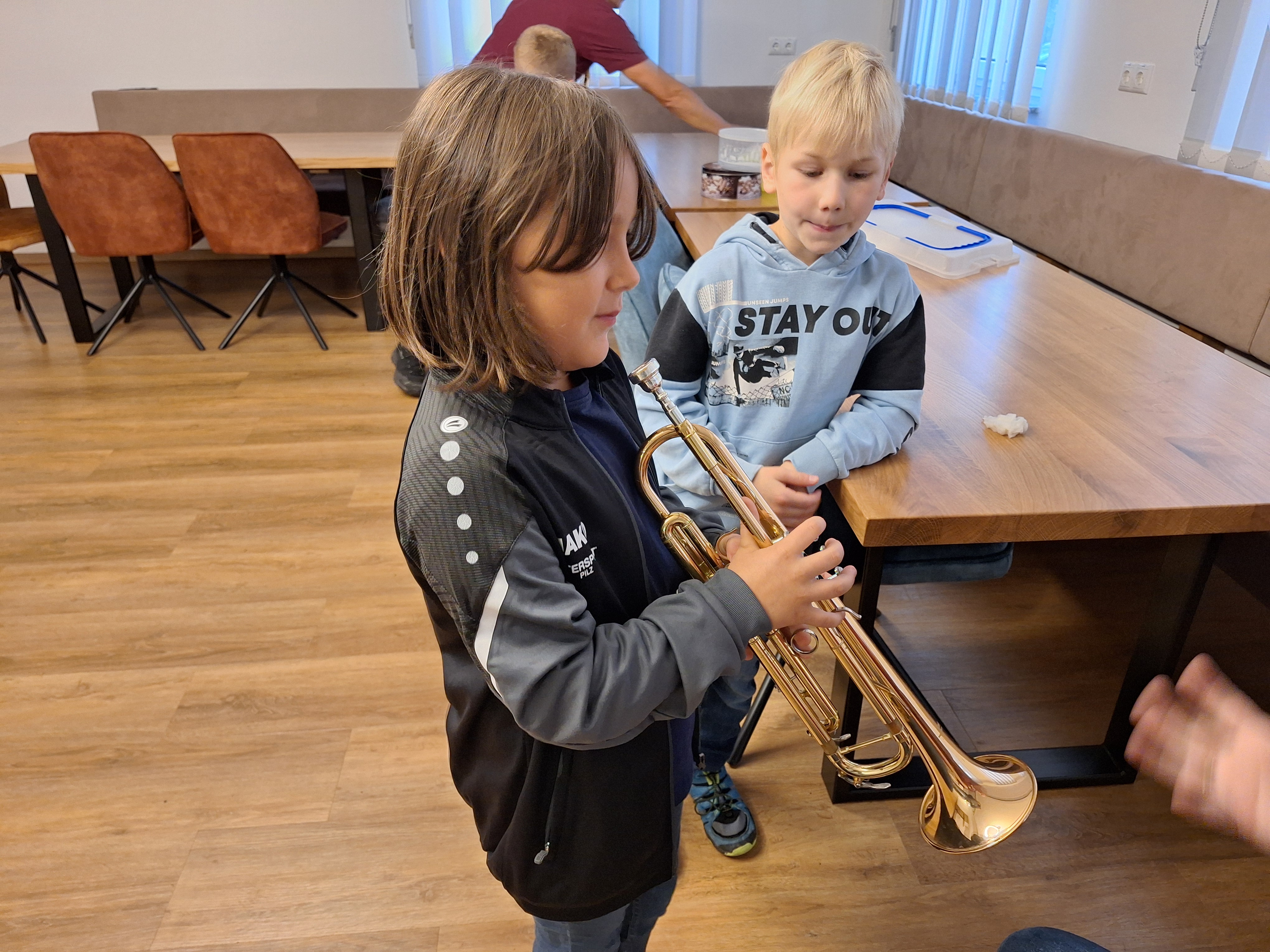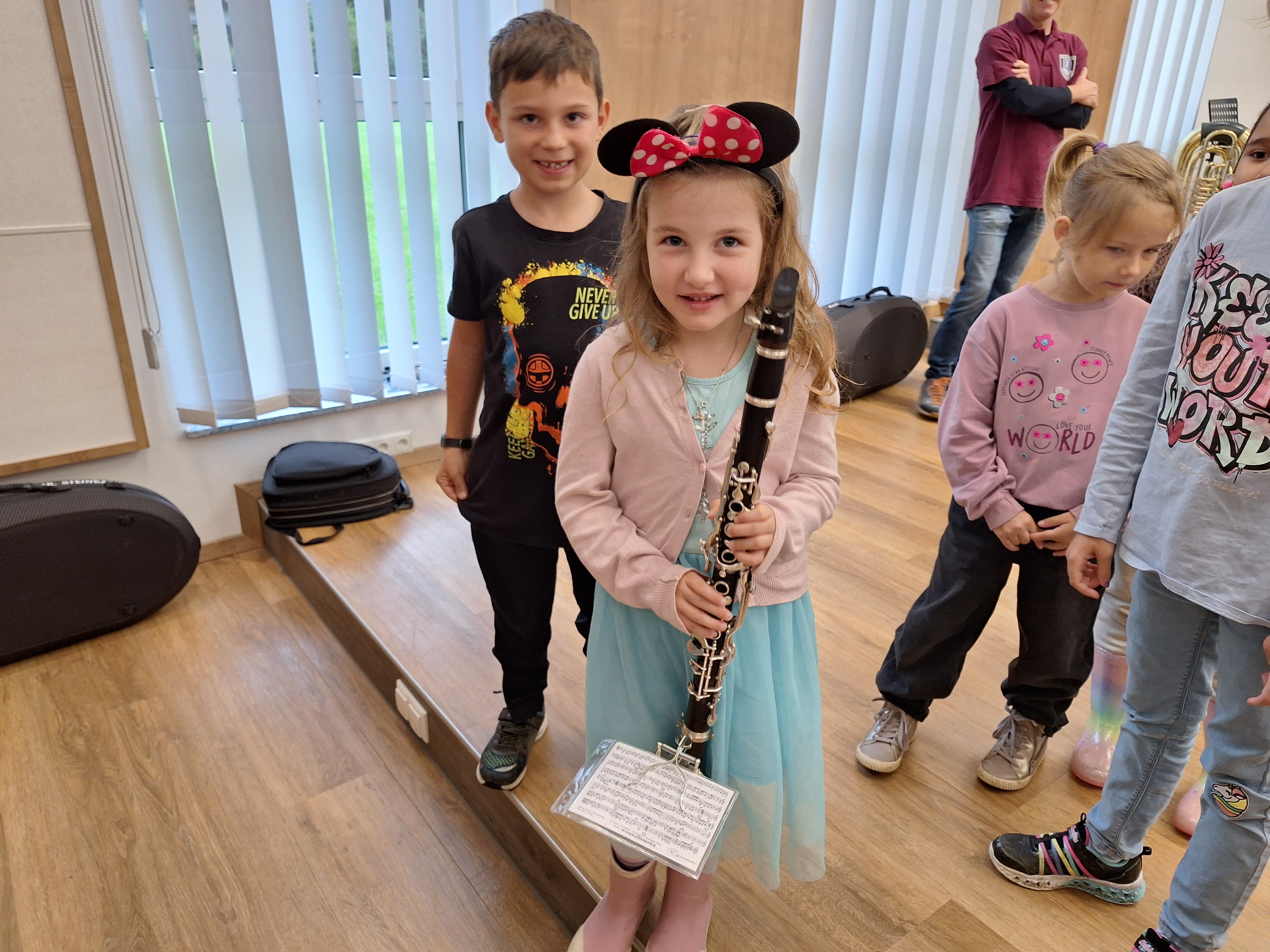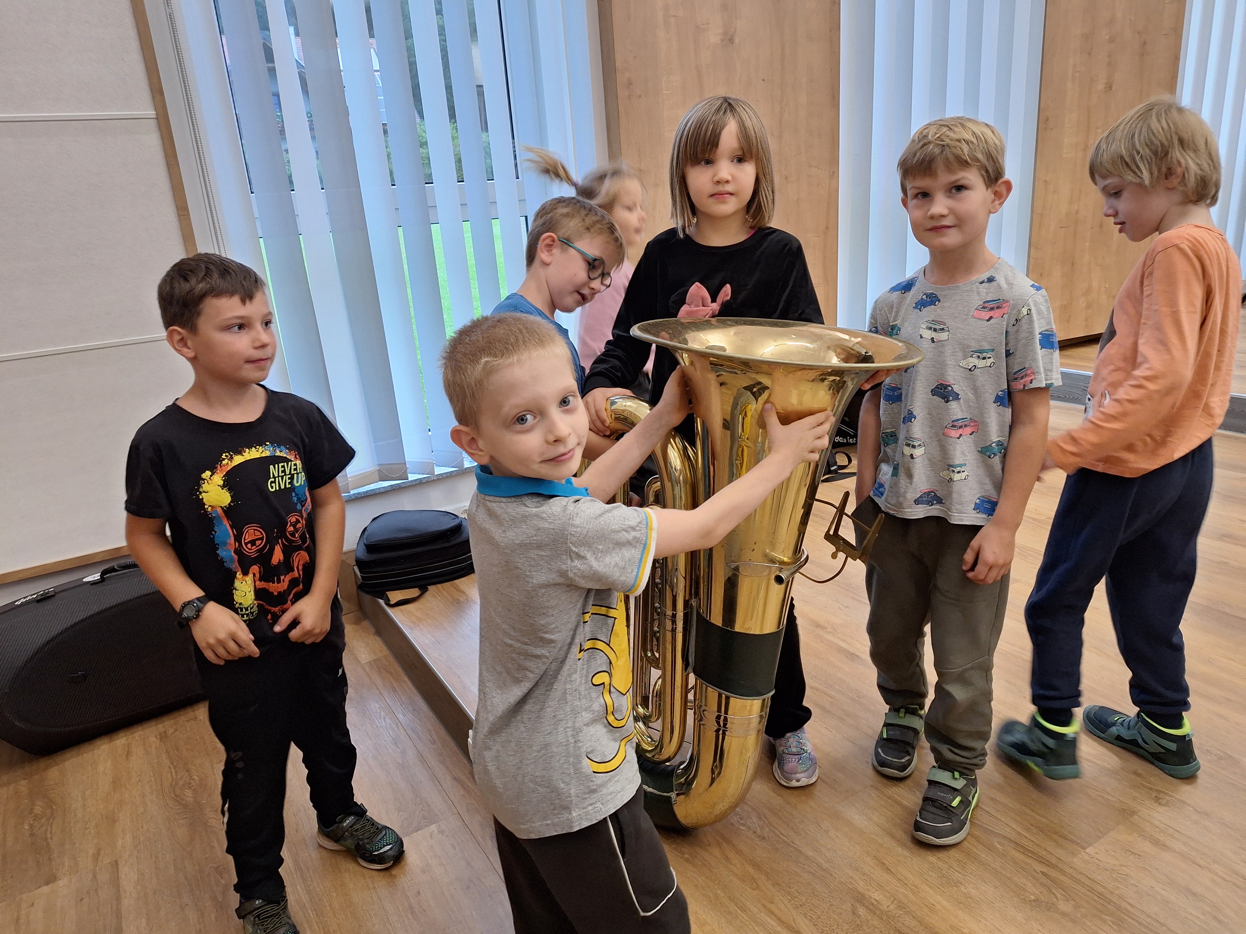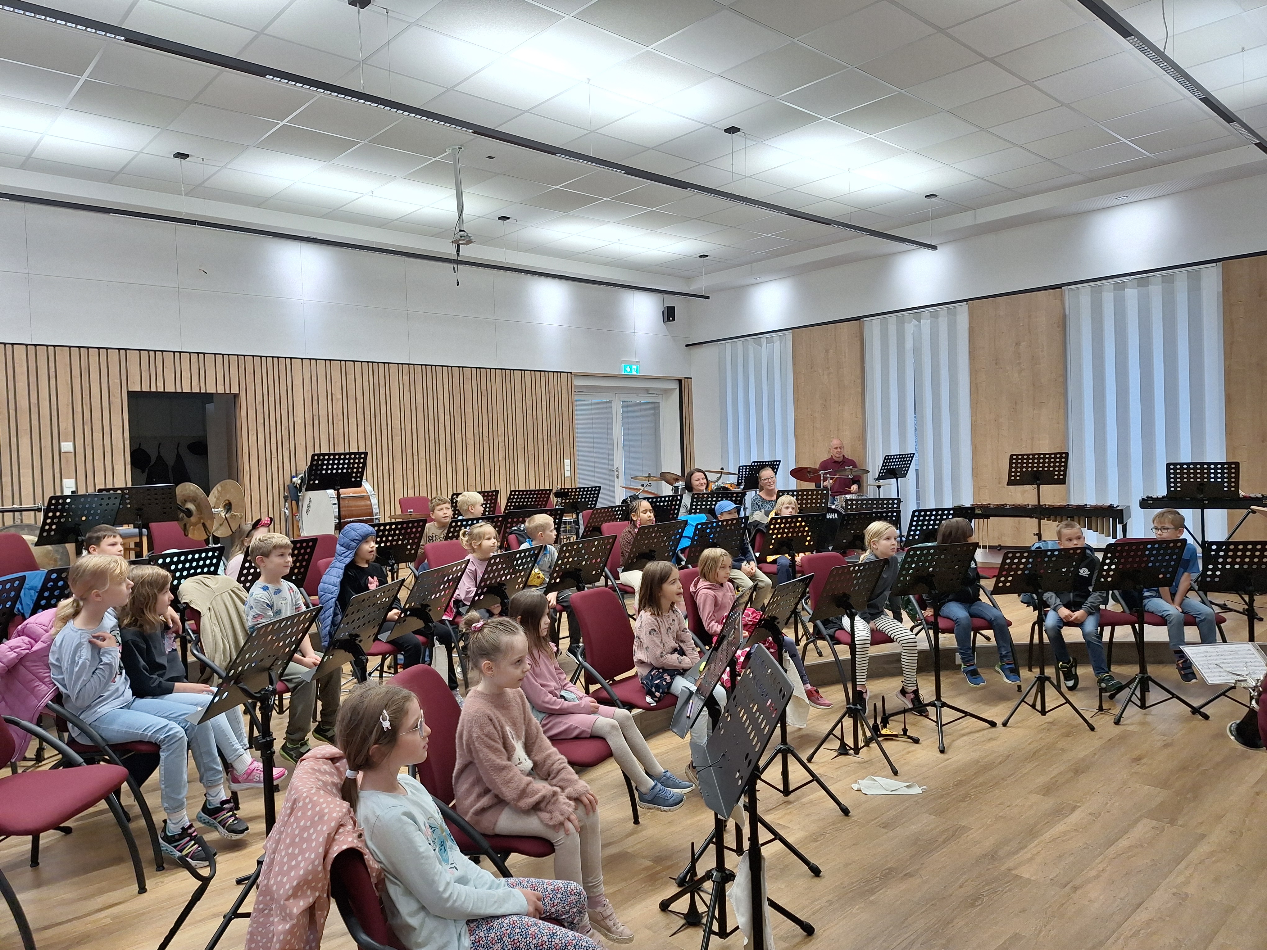Am 26. September wurde die gesamte Schule vom Musikverein Großsteinbach eingeladen. Wir durften vor Ort ein kleines Konzert mit verschiedensten Instrumenten genießen und danach durften die Kinder selbst alle Instrumente, wie beispielsweise die Querlöte, das Schlagzeug oder das Horn, vor Ort ausprobieren. Die Schülerinnen und Schüler hatten große Freude und Spaß am Ausprobieren der verschiedensten Instrumente! Bei der Verabschiedung bekam jedes Kind noch ein kleines Abschlussgeschenk des Musikvereins, worüber die Kinder sich auch sehr freuten.
