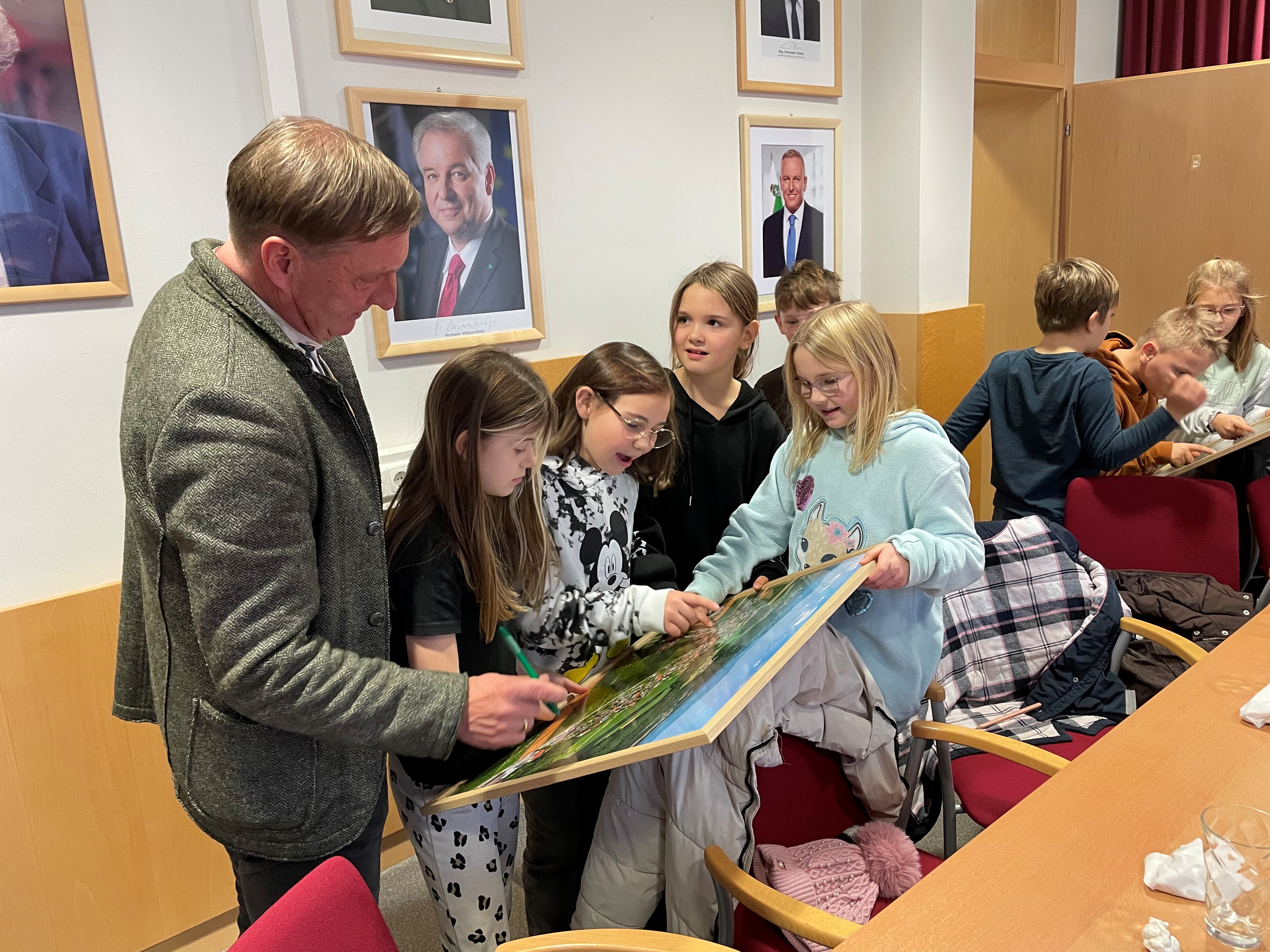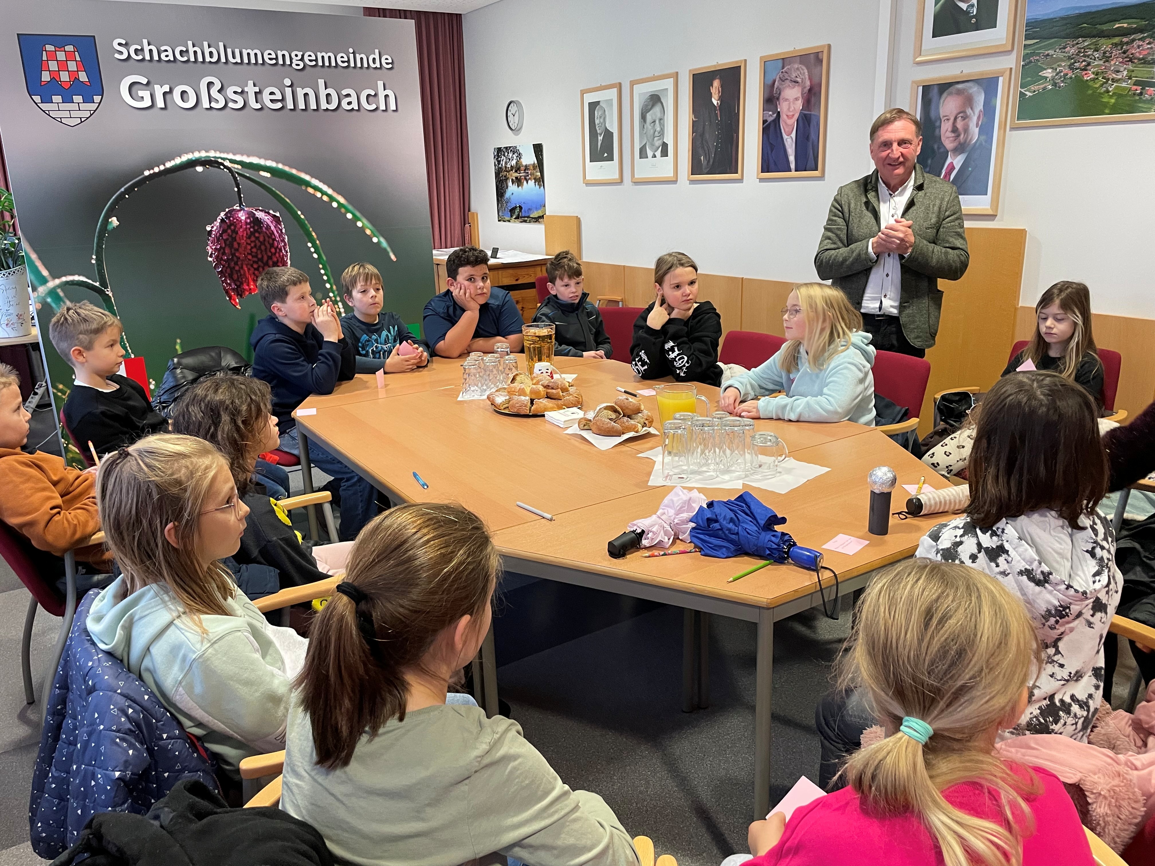Die dritte Klasse durfte einen besonderen Ausgang im Sachunterricht machen: Wir besuchten das Gemeindeamt und wurden dort herzlich von Bürgermeister Manfred Voit empfangen. In einem Interview erzählte er uns viele spannende Infos über unsere Gemeinde und den Alltag des Bürgermeisters.