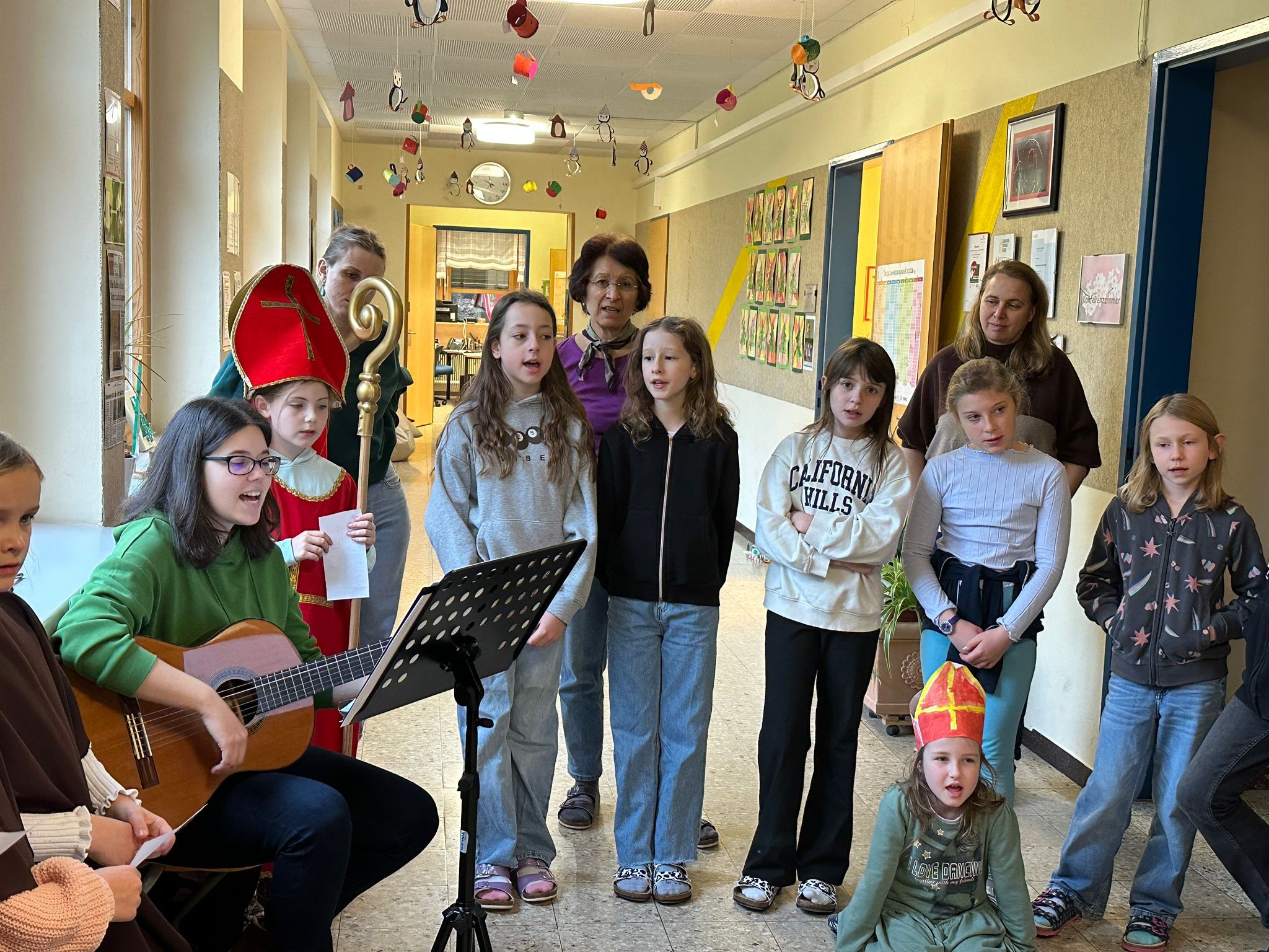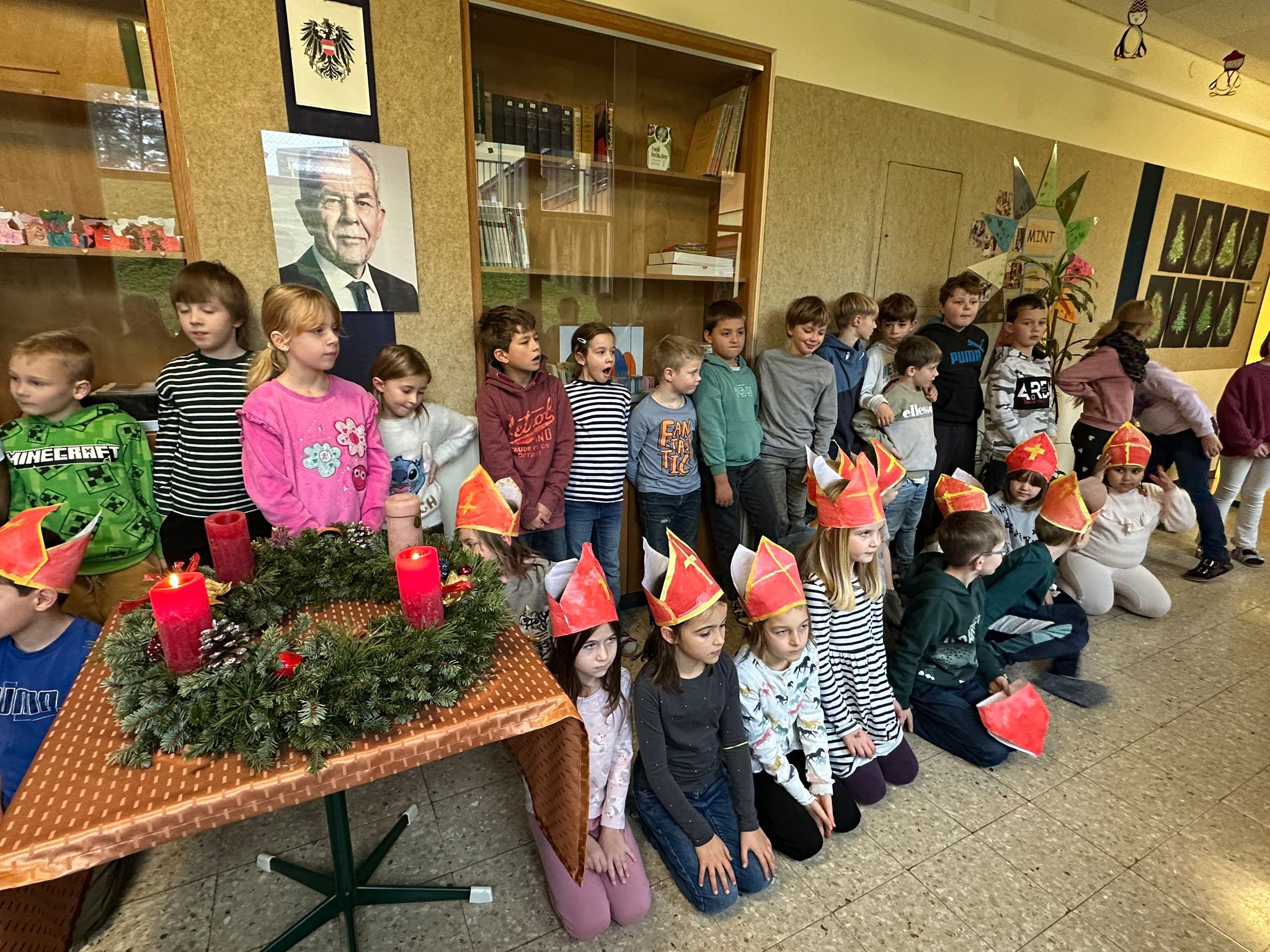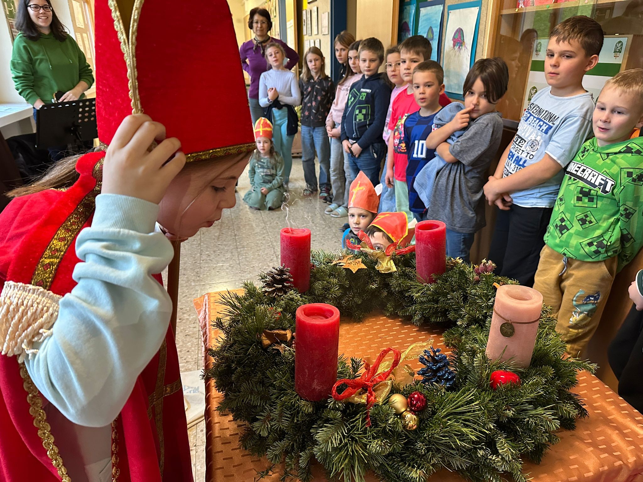 Am 4. Dezember feierte unsere gesamte Schule gemeinsam eine stimmungsvolle Nikolausfeier. Geleitet wurde die Feier von unserer Religionslehrerin, die mit viel Herz durch das Programm führte. Ein besonderer Höhepunkt war der Auftritt der 3. Klasse, die mit großem Engagement eine Geschichte vorspielte. So konnten alle gemeinsam einen schönen Einstieg in die Vorweihnachtszeit erleben.