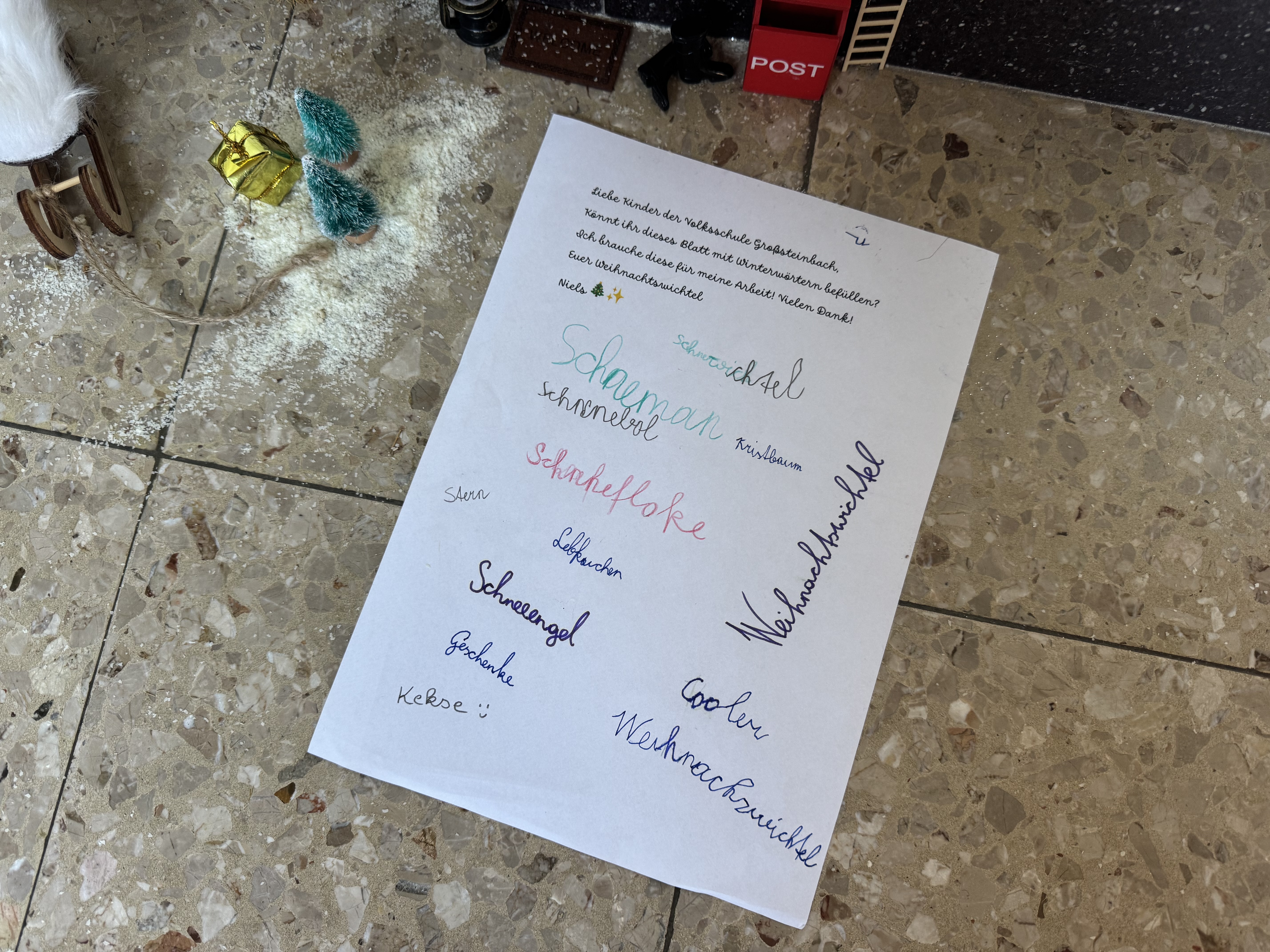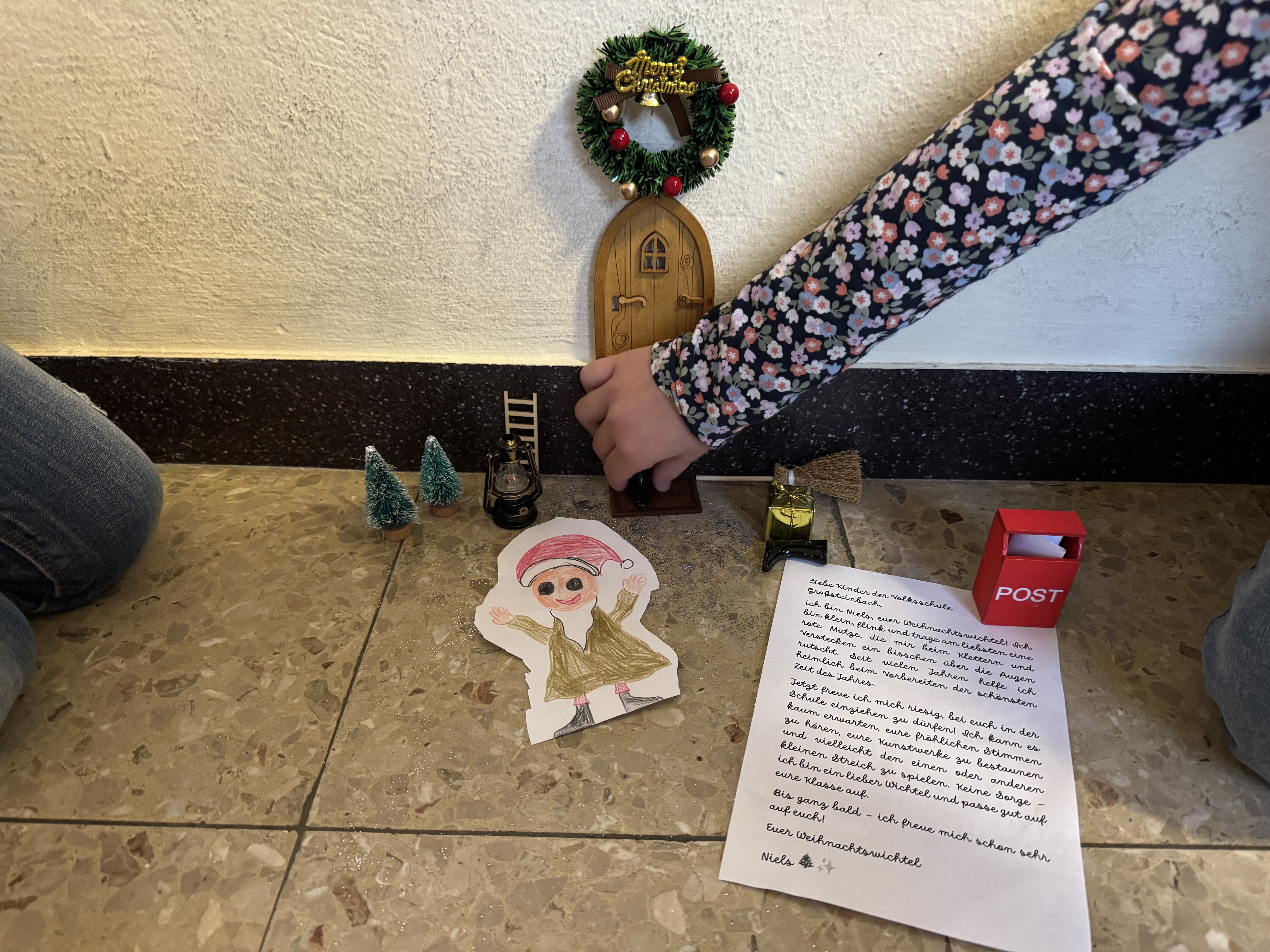 In unserer Schule ist im Dezember ein ganz besonderer Gast eingezogen: der fröhliche Schulwichtel Niels. Schon seit seinem ersten Tag sorgt er für neugierige Blicke und gespannte Erwartungen, denn Niels ist für seinen Humor bekannt. Immer wieder hinterlässt er kleine Streiche, überraschende Hinweise oder spannende Aufgaben, die die Kinder jeden Morgen aufs Neue entdecken.