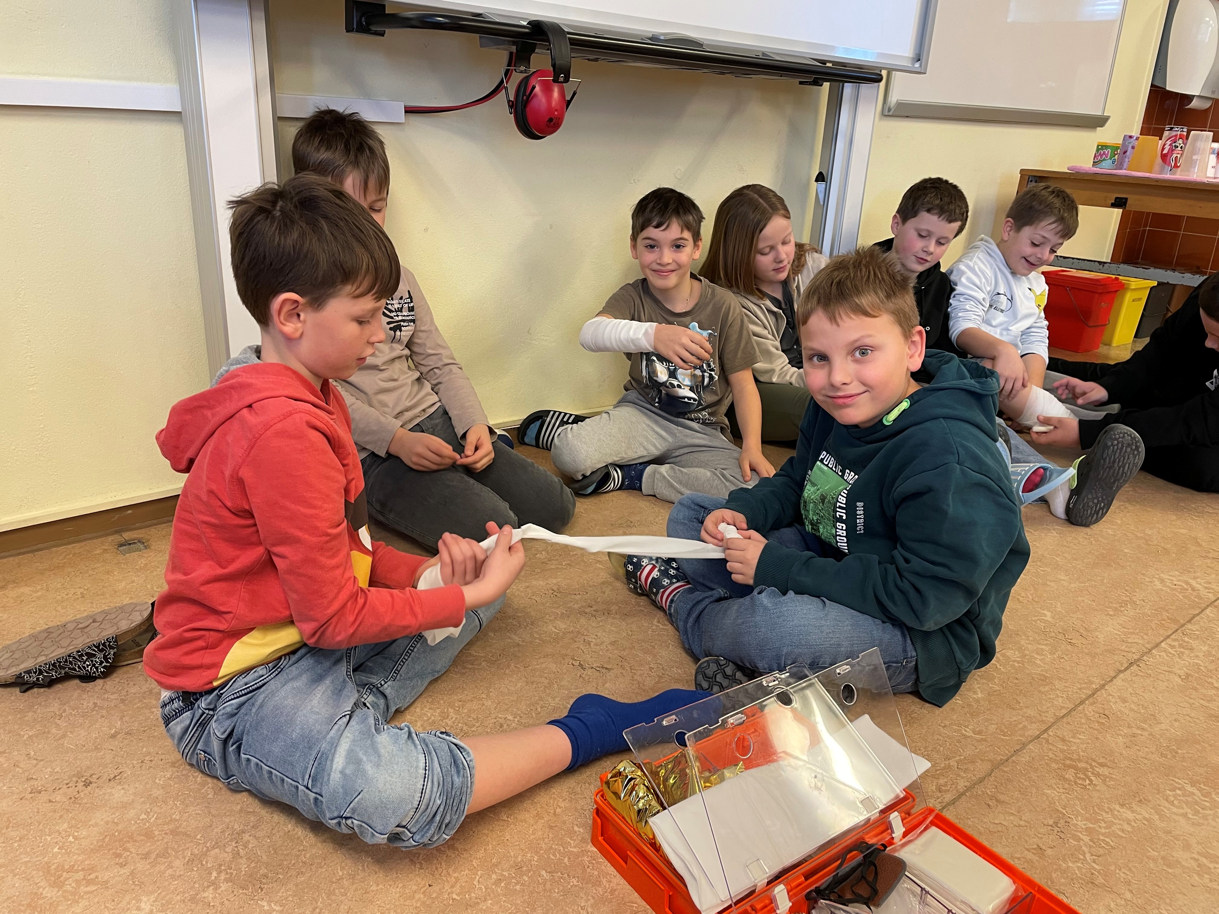 Im Sachunterricht der 3. Klasse stand in den letzten Wochen das spannende Thema Feuer im Mittelpunkt. Die Kinder lernten dabei wie Feuer entsteht, welchen Nutzen das Feuer für die Menschen hat und fanden mit einem Versuchsprotokoll heraus, welche Materialien brennbar sind und welche nicht. Unter anderem lernten sie auch den richtigen Umgang mit Feuer und mögliche Gefahren kennen. Abschließend lernten die Schülef*innen auch erste wichtige Erste-Hilfe-Techniken kennen. Ein besonderer Schwerpunkt lag auf der Rettungskette: Unfallstelle sichern, Notruf absetzen, Erste Hilfe leisten und auf professionelle Hilfe warten. So wurden die Schülerinnen und Schüler altersgerecht für den Ernstfall sensibilisiert und konnten ihr Wissen praktisch anwenden.